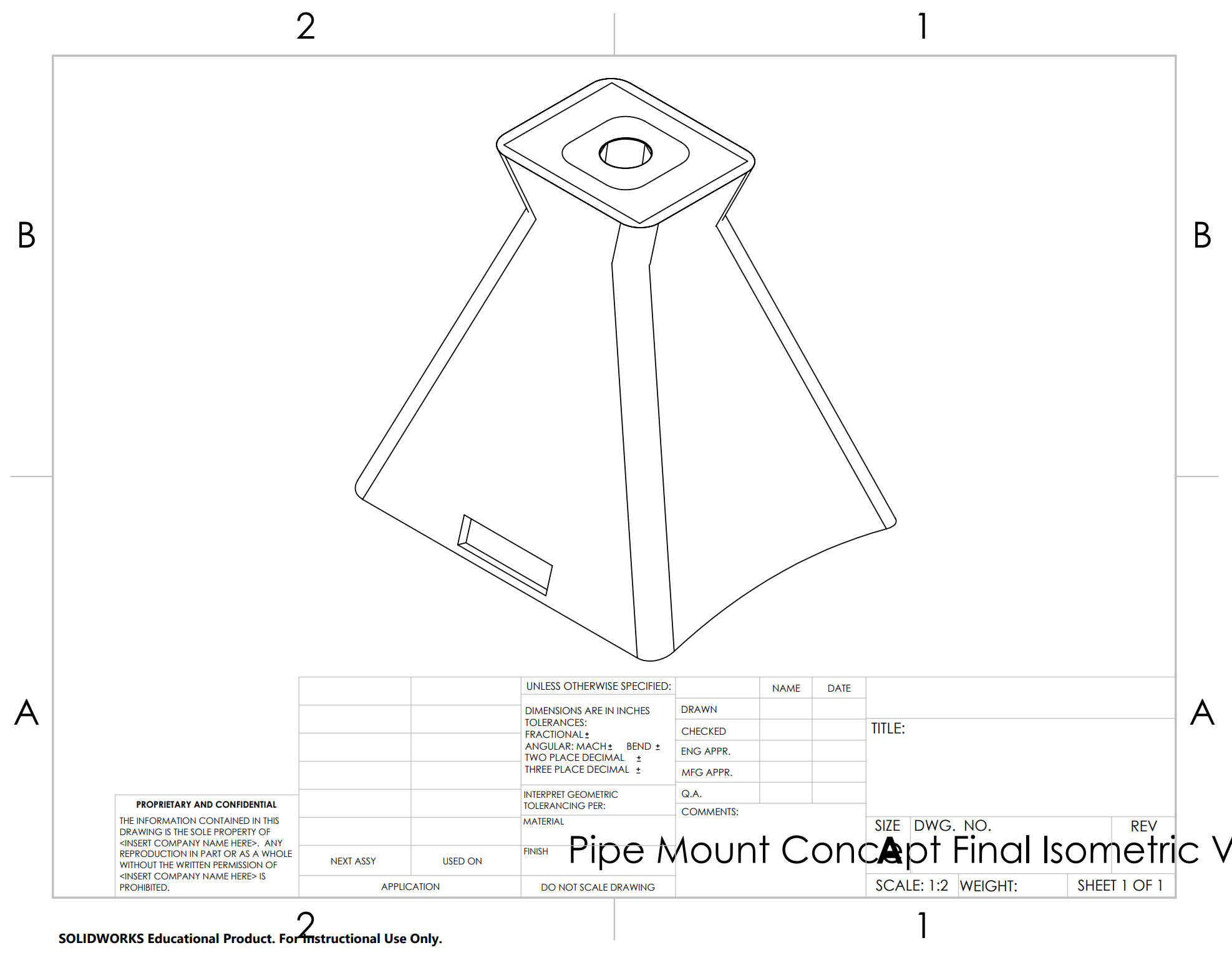 During my time with Massachusetts Materials Technologies, I created a 3D-Printed camera mount that eliminated glare on a reflective surface for pipe seam imaging.